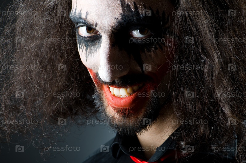 Мужчина в образе джокера в темной комнате