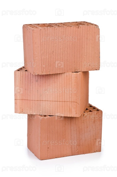 Стопка из глиняного кирпича, изолировано на белом