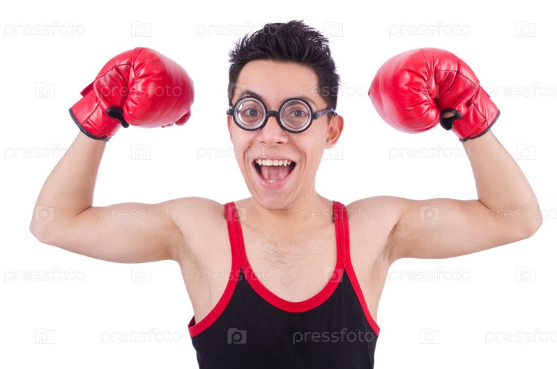 Смешной боксер, изолированный на белом фоне