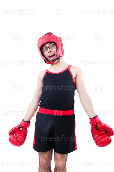 Смешной боксер, изолированный на белом фоне