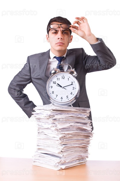 Бизнесмен с гигантским будильником