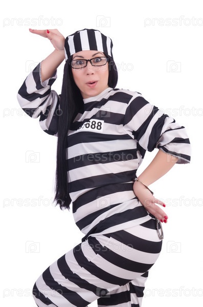 Заключенный в полосатой форме на белом фоне