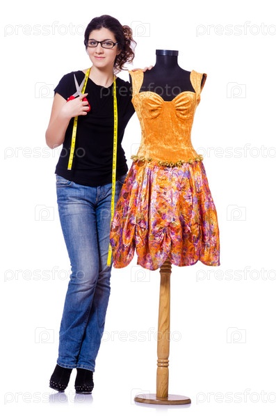 Женщина портной, изолированная на белом