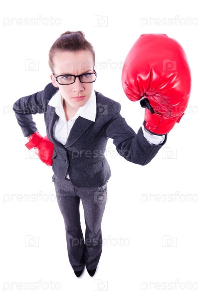 Женщина с боксерскими перчатками на белом