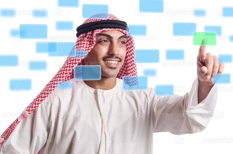 Араб нажимает на виртуальные кнопки