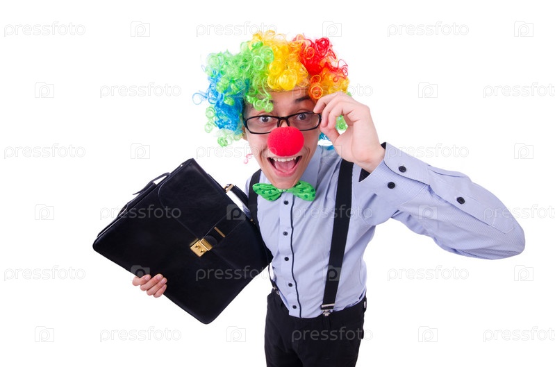 Деловой клоун, изолированный на белом фоне