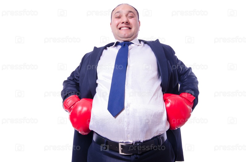 Молодой бизнесмен боксер, изолированный на белом