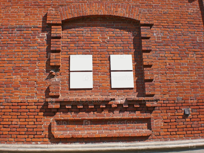 Кирпичная стена дома с табличками