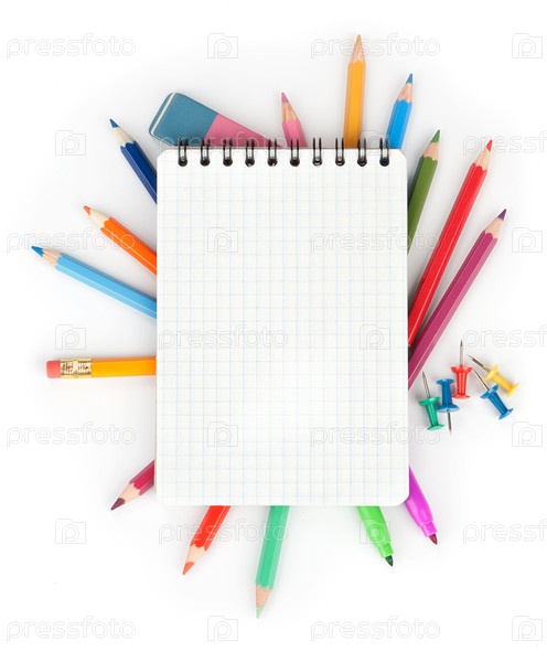 Цветные карандаши и блокнот. Концепция школы