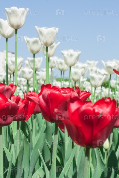 Белые и красные тюльпаны