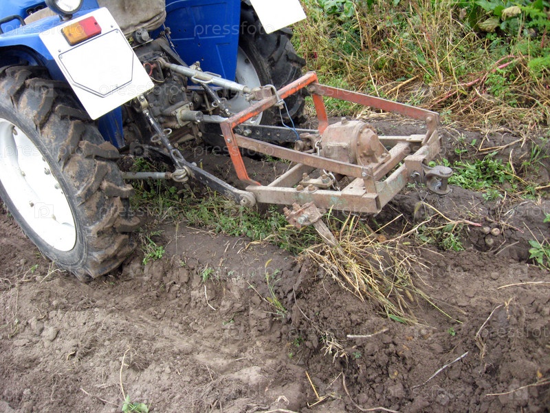 Процесс уборки картофеля трактором
