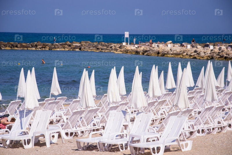 Зонтики и шезлонги на песке