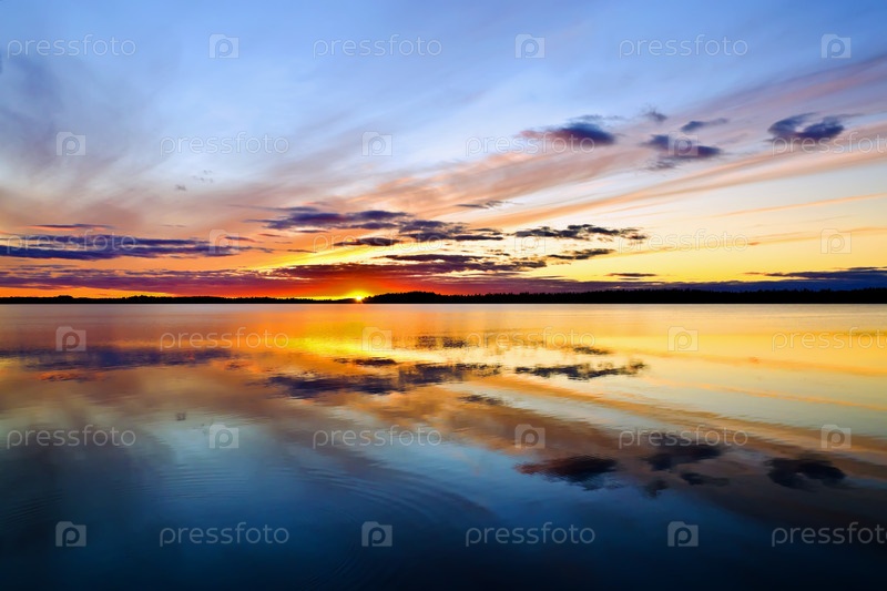 Солнце ложится спать. Поньгомозеро, северная Карелия, Россия