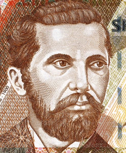 Наим Фрашери (1846-1900) на купюре 200 леков 2007 года из Албании. Албанский поэт и писатель