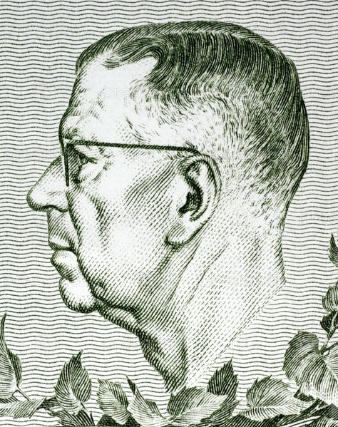 Густав VI Адольф (1882-1973) на купюре от 1980 года стоимостью 10 крон из Швеции Король Швеции в течение 1950-1973 гг