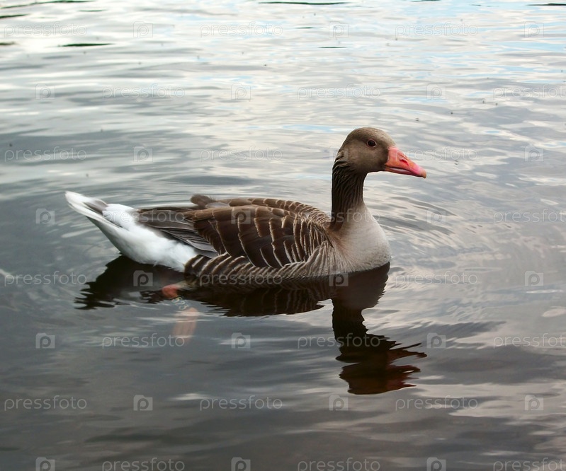 Серый гусь на воде