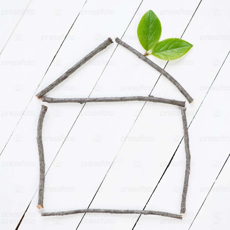 Экологический дом из веток и зеленых листьев