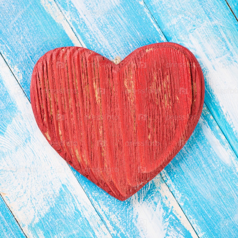 Красное деревянное сердце на деревянных досках, вид сверху