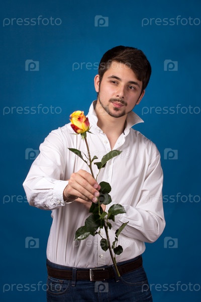 Мужчина дарит красную розу