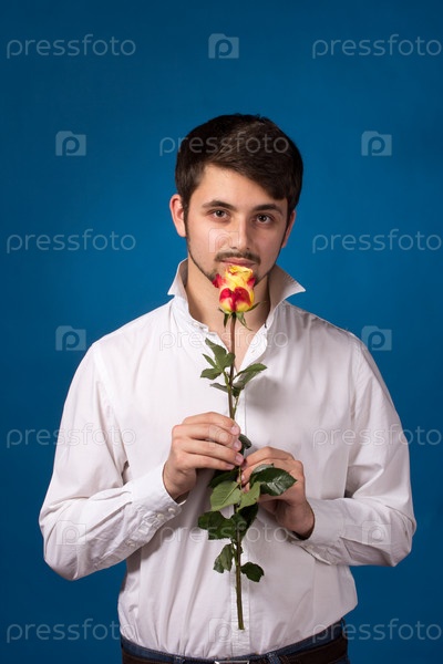 Мужчина дарит красную розу