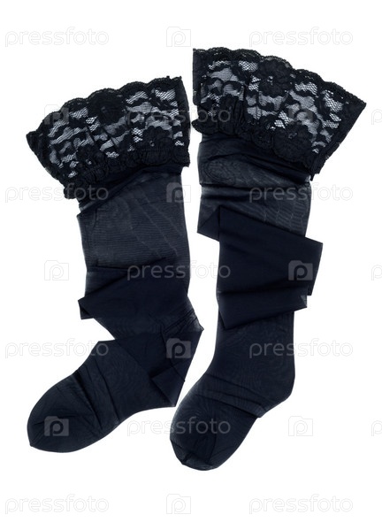 Черные чулки с кружевной эластичной лентой