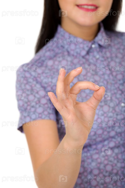 Девушка демонстрирует знак OK