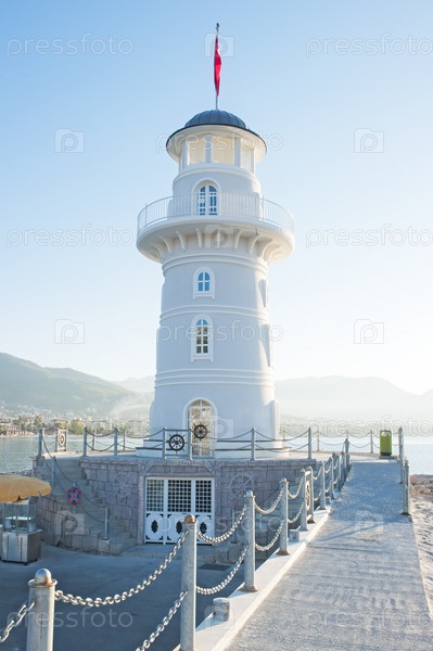Пейзаж с маяком в гавани города Алания на рассвете