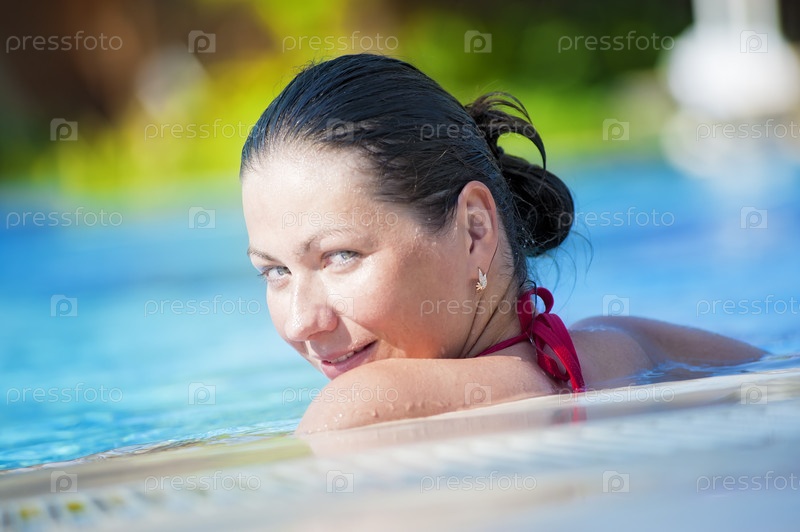 Счастливая девушка в бассейне