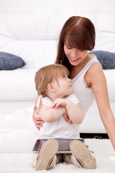 Мать и дочь с планшетным компьютером