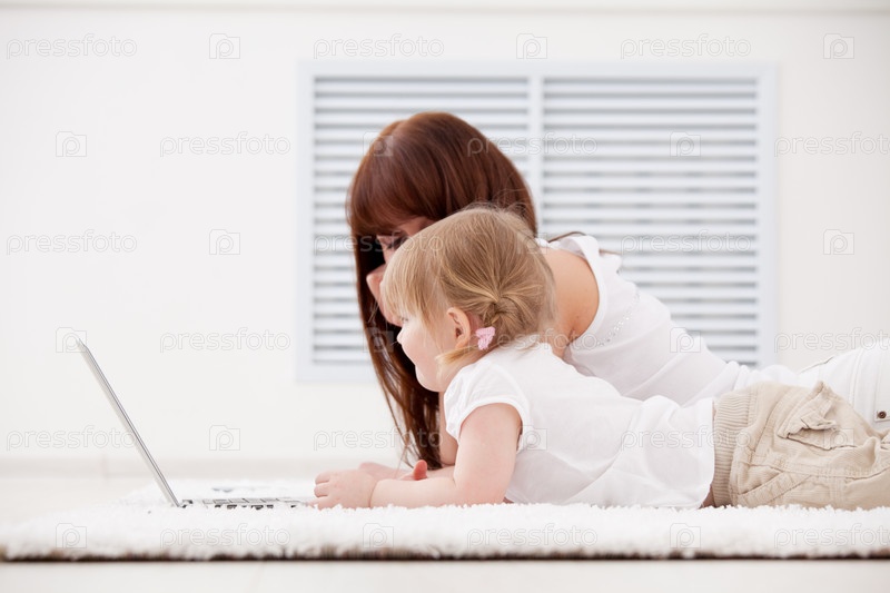 Мать с дочерью смотрят на ноутбук