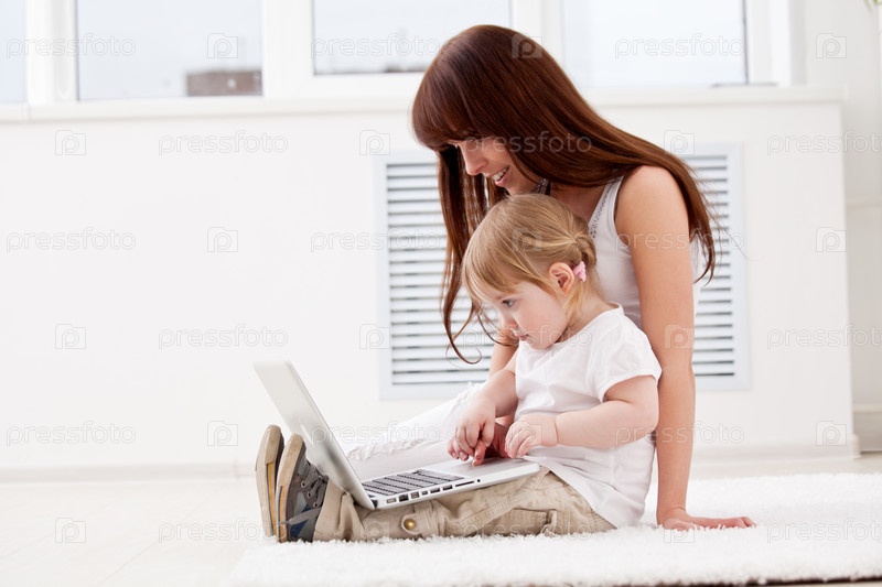 Мать с дочерью используют ноутбук