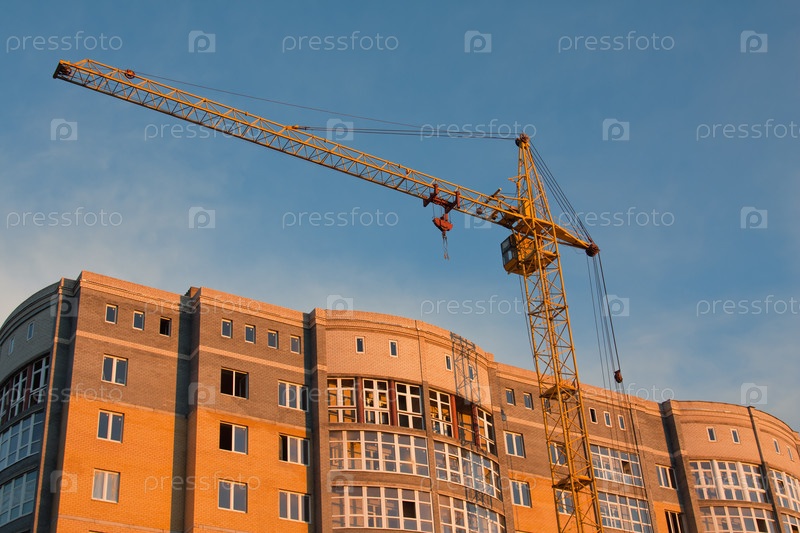 Строительный кран возле нового многоэтажного дома