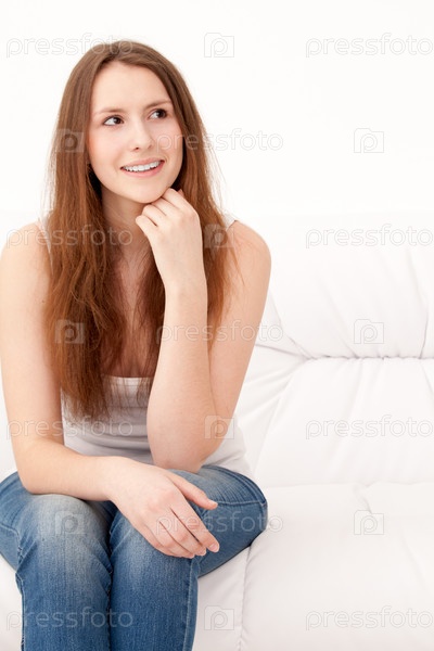 Женщина сидит на диване