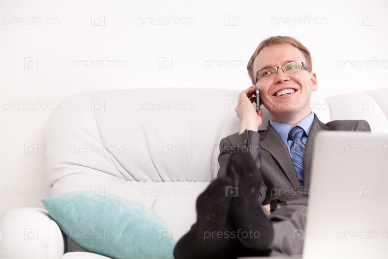 Молодой человек говорит по телефону