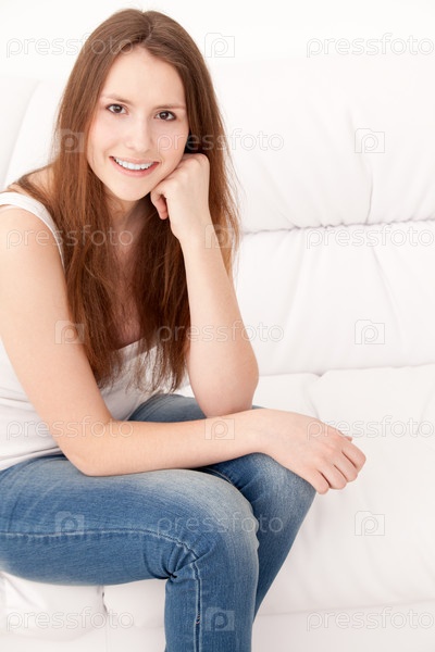 Женщина сидит на диване