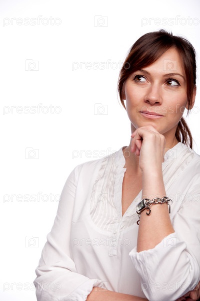 Задумчивая женщина смотрит вверх