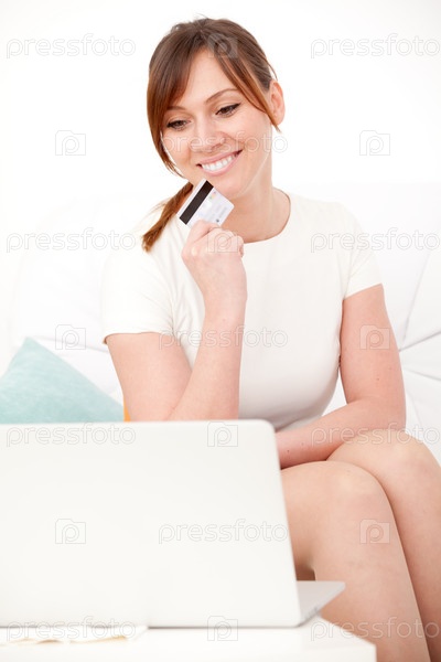 Женщина с ноутбуком и кредитной картой