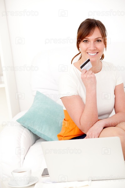 Женщина с ноутбуком и кредитной картой