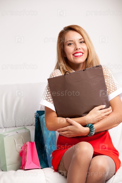 Женщина обнимает пакет