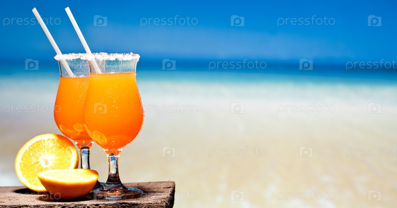 Два бокала коктейля текила санрайз на деревянной доске