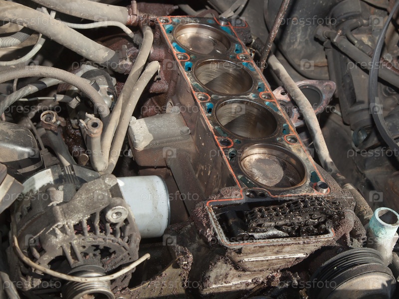 Легковой автомобиль с разобранным двигателем