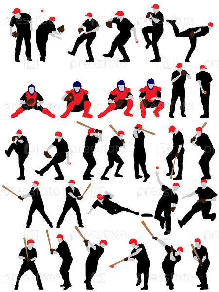 Набор силуэтов бейсболистов