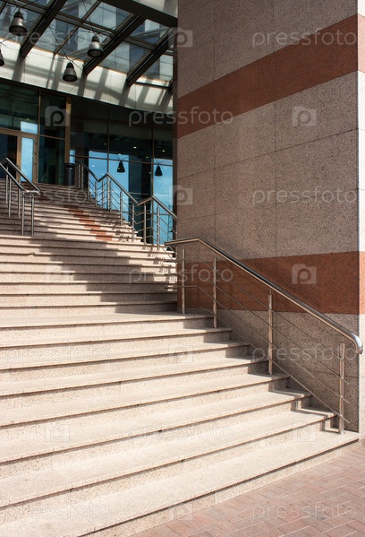 Гранитная лестница с металлическими перилами