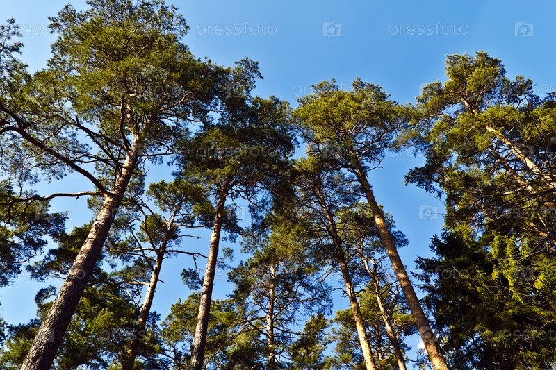 Вершины сосен на фоне голубого неба