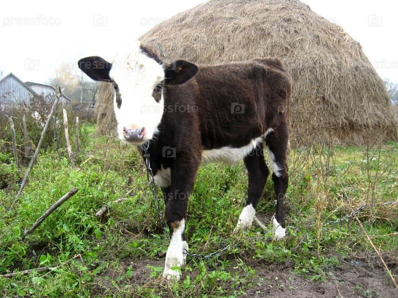 Теленок у стога сена