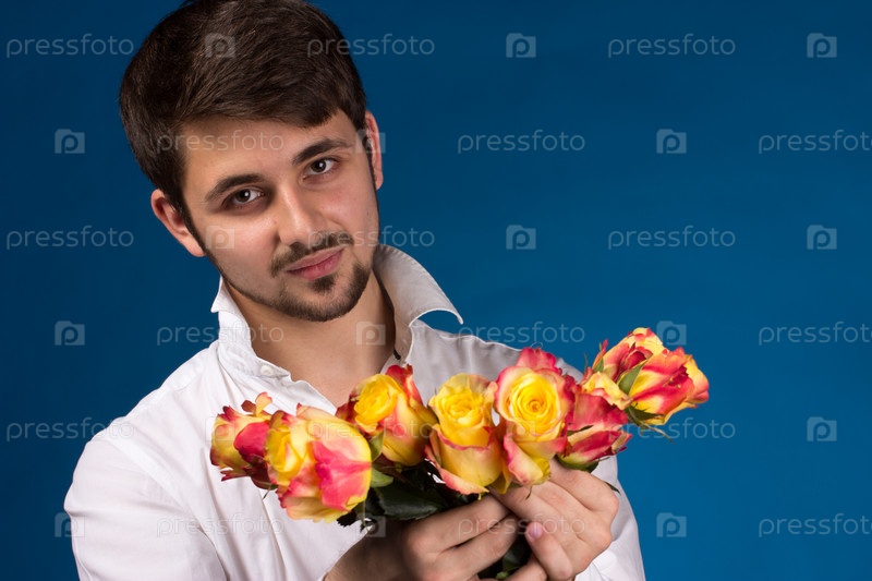 Мужчина с букетом красных роз
