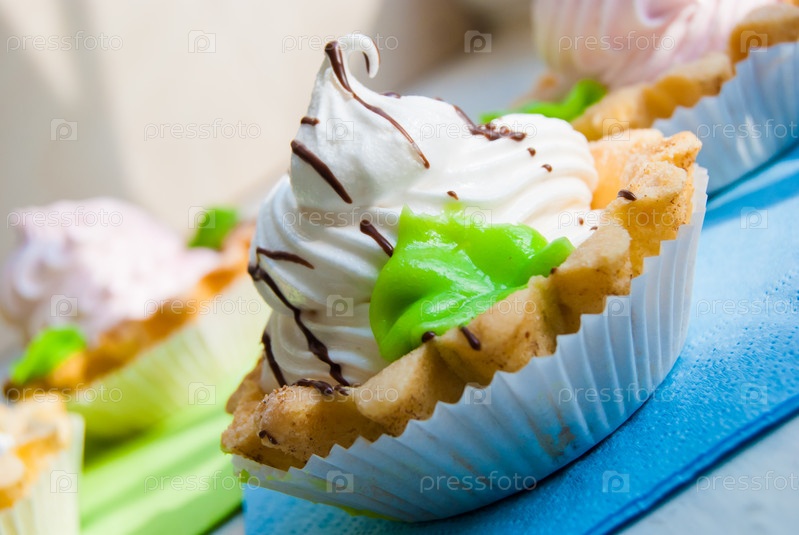 Цветные кексы на салфетках в солнечном свете