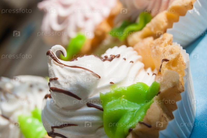 Цветные кексы на салфетках в солнечном свете