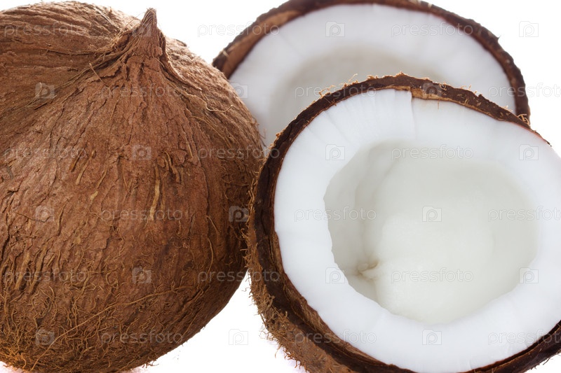 Кокос, изолированный на белом фоне
