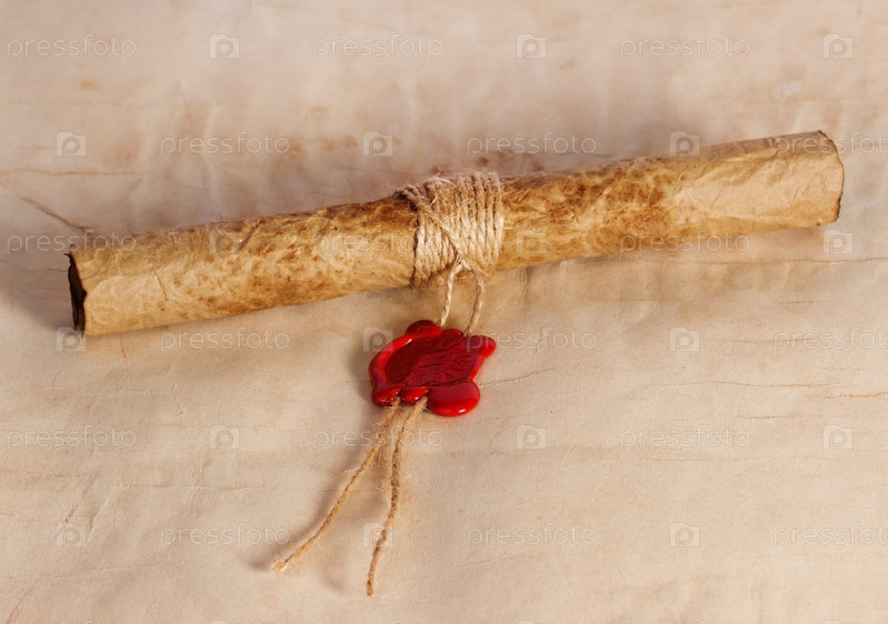 Старый конверт из пергаментной бумаги с сургучной печатью